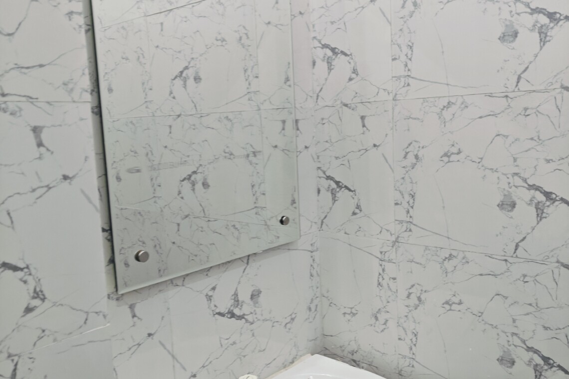 • A large glass window provides ample natural light and ventilation.