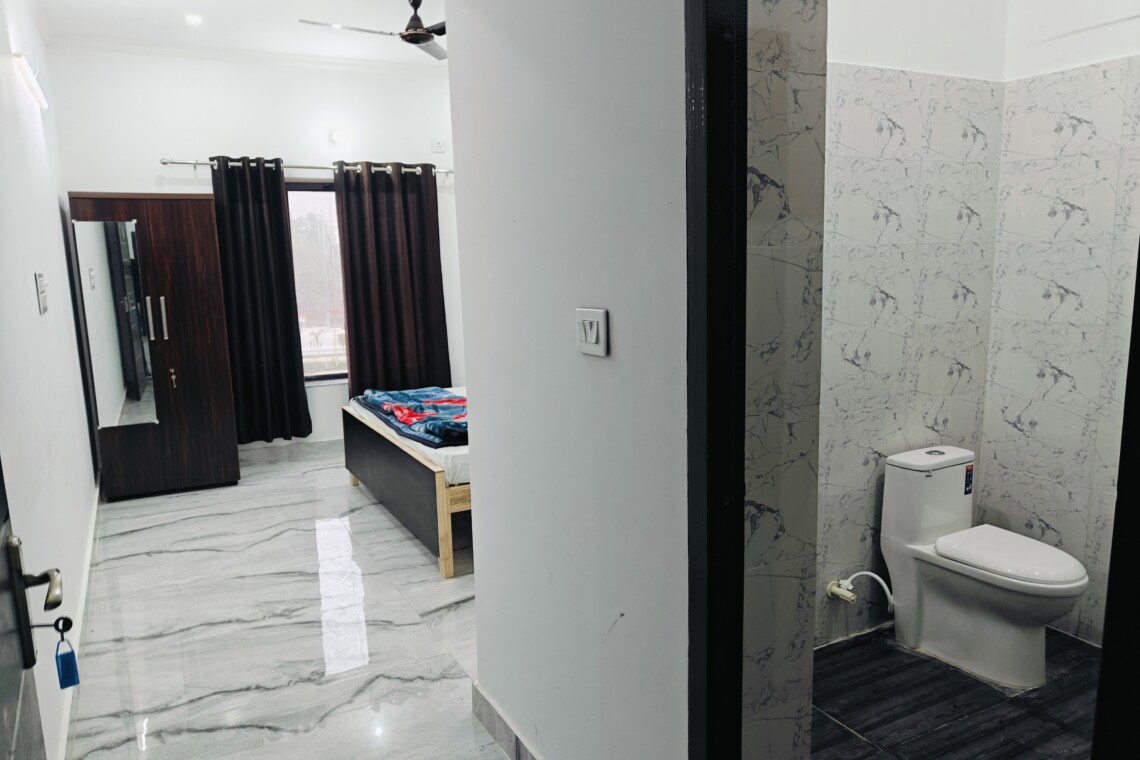 • Each room comes with an attached washroom equipped with a geyser and a Western-style commode.